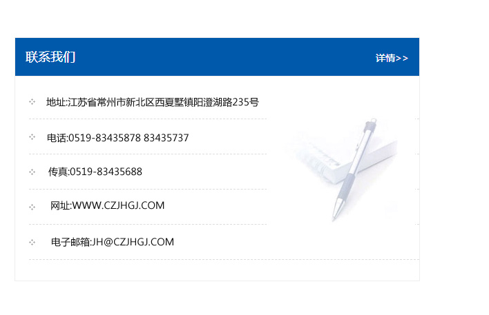 傳真:0519-83435688    郵編:213135    網址:WWW.czjhgj_com.ytsyht.com    電子郵箱:JH@czjhgj_com.ytsyht.com